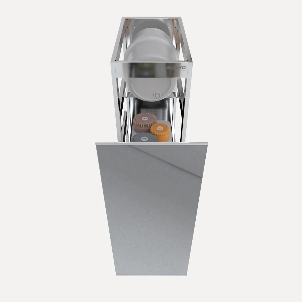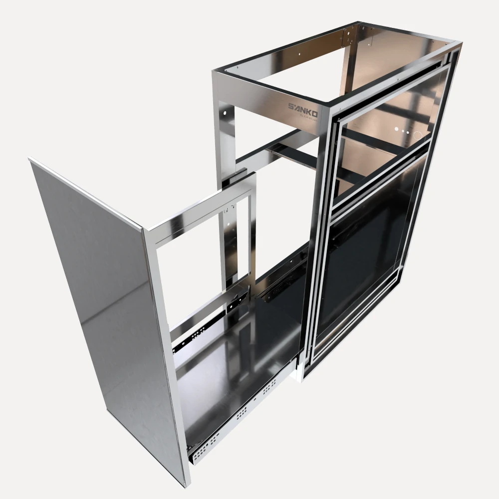 - Cách ly vệ sinh: Máy lọc nước tạo ra nước tinh khiết uống trực tiếp. Việc đặt máy RO chung khoang với xi-phông thoát nước chậu rửa và thùng rác tiềm ẩn nguy cơ nhiễm khuẩn chéo rất cao. Module R300mm tạo ra một “phòng vô trùng” độc lập hoàn toàn bằng Inox 304 để bảo vệ hệ thống lọc.