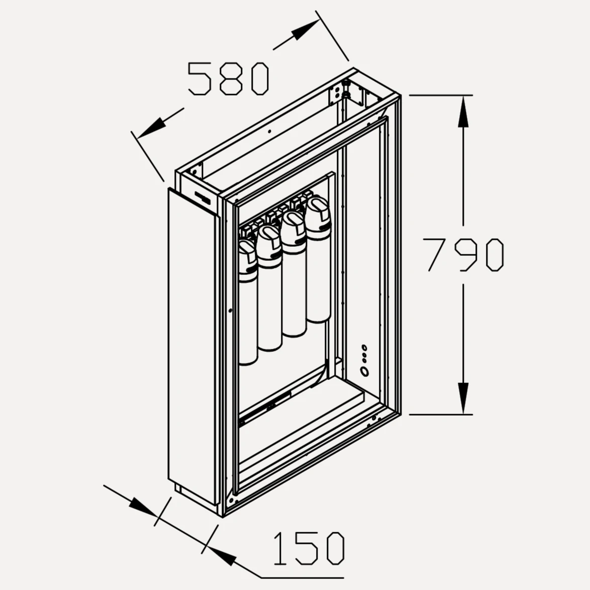 - Kích thước (R x S x C): 150 x 580 x 790 (mm)