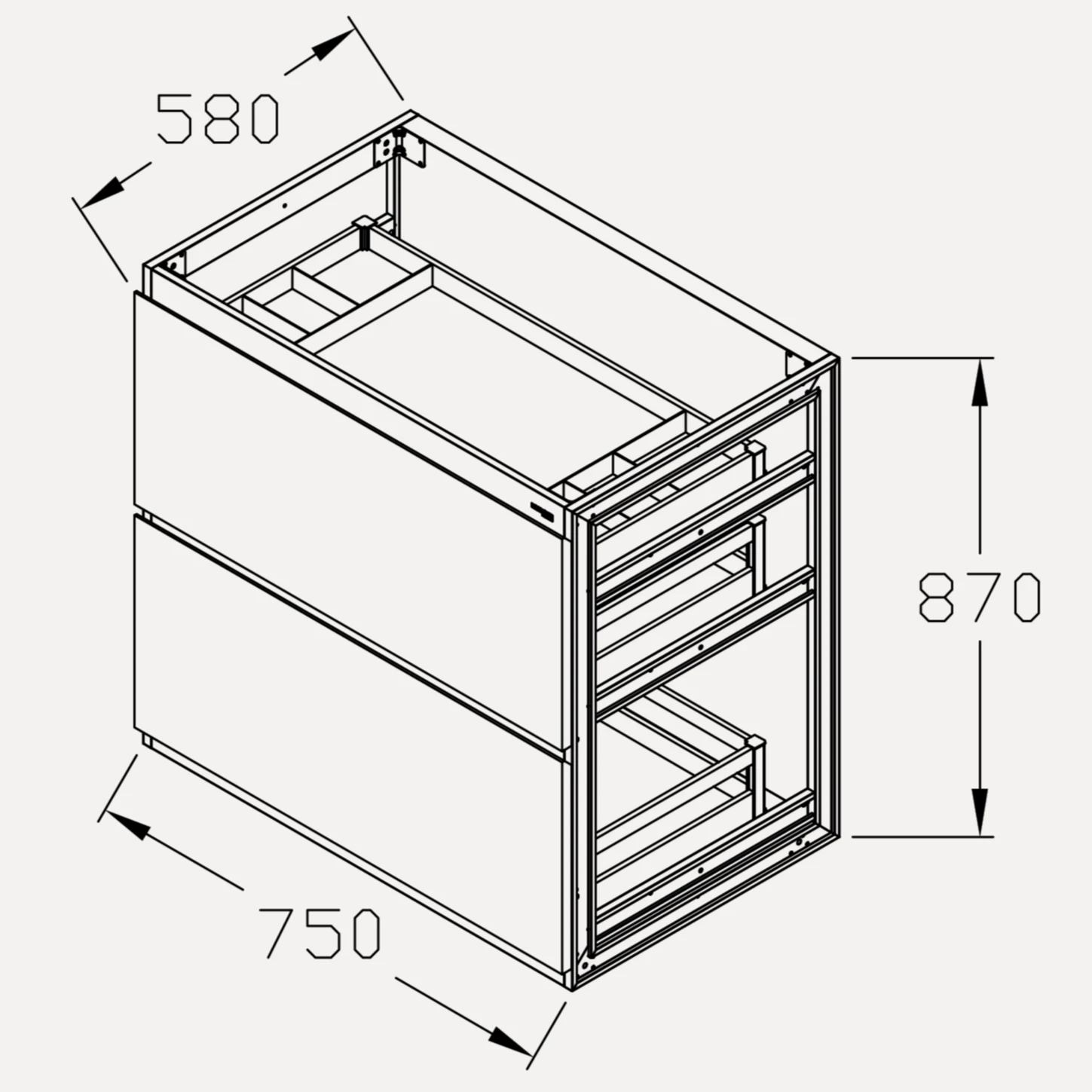 P751CD được sản xuất theo quy chuẩn kích thước R750 – S580 – C870 (mm), nhằm đảm bảo tính đồng bộ trong toàn hệ tủ bếp Sanko. Với các công trình thi công trọn gói, Sanko sẽ đề xuất phương án bố trí phù hợp với mặt bằng thực tế, giúp tối ưu không gian và đảm bảo sự liền mạch trong thiết kế.