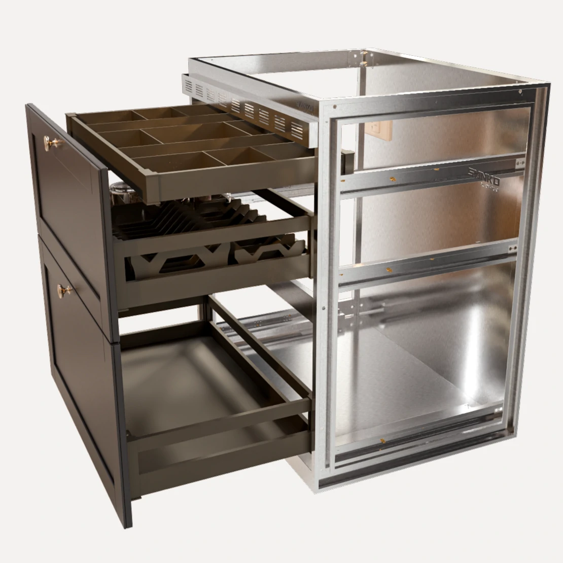 Không chỉ là một chiếc tủ đựng bát đĩa thông thường, Module P751CD trị giá 16,000,000 VNĐ giúp tản nhiệt an toàn cho chiếc bếp từ đắt tiền của bạn. Sự kết hợp giữa Inox 304 siêu bền và cấu trúc 3 tầng ngăn kéo thông minh từ Sanko chắc chắn sẽ biến công việc nấu nướng hàng ngày trở thành một trải nghiệm đầy tận hưởng.