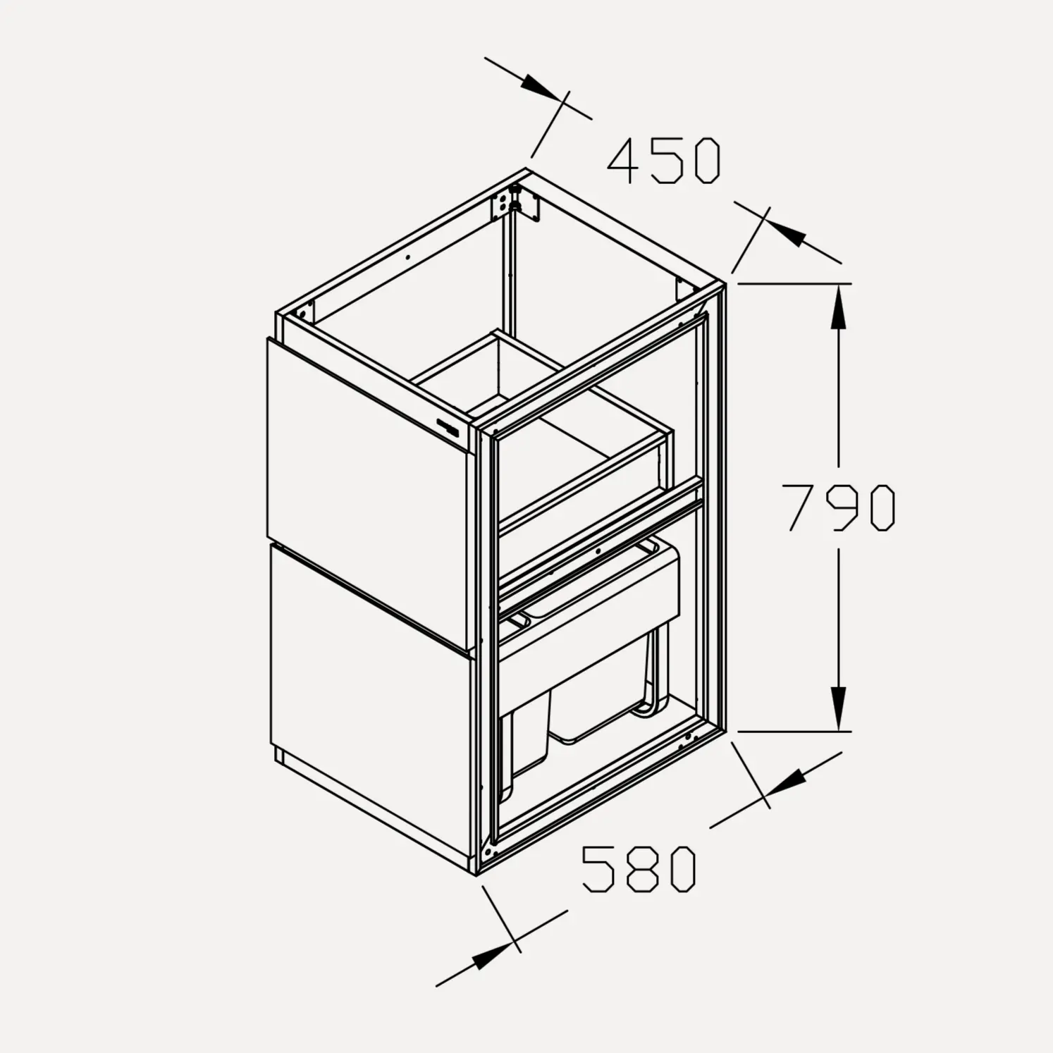 - Tận dụng không gian hẹp: Với chiều rộng 450mm, module này dễ dàng lắp đặt vào những vị trí nhỏ hẹp mà các tủ tiêu chuẩn 600mm-800mm không vừa, giúp tận dụng tối đa diện tích bếp.
