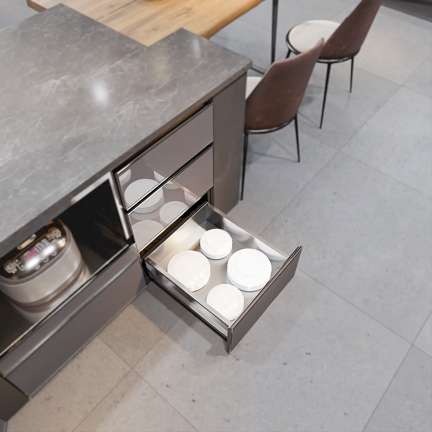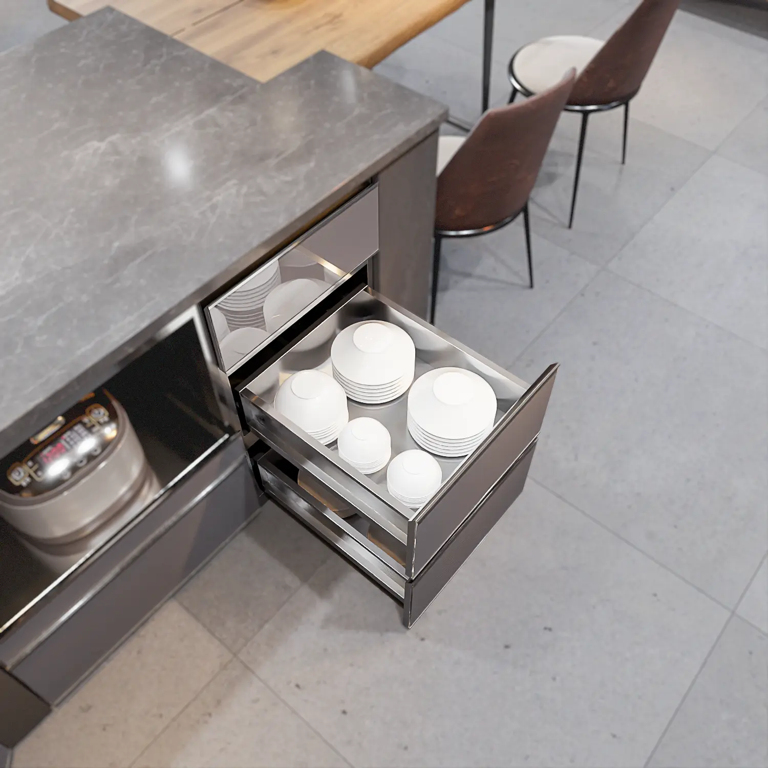 - Bảo vệ bát đĩa: Lưu trữ trong ngăn kéo kín giúp bát đĩa tránh bụi bẩn, côn trùng và dầu mỡ bay trong không khí nhà bếp tốt hơn so với để trên giá bát hở.