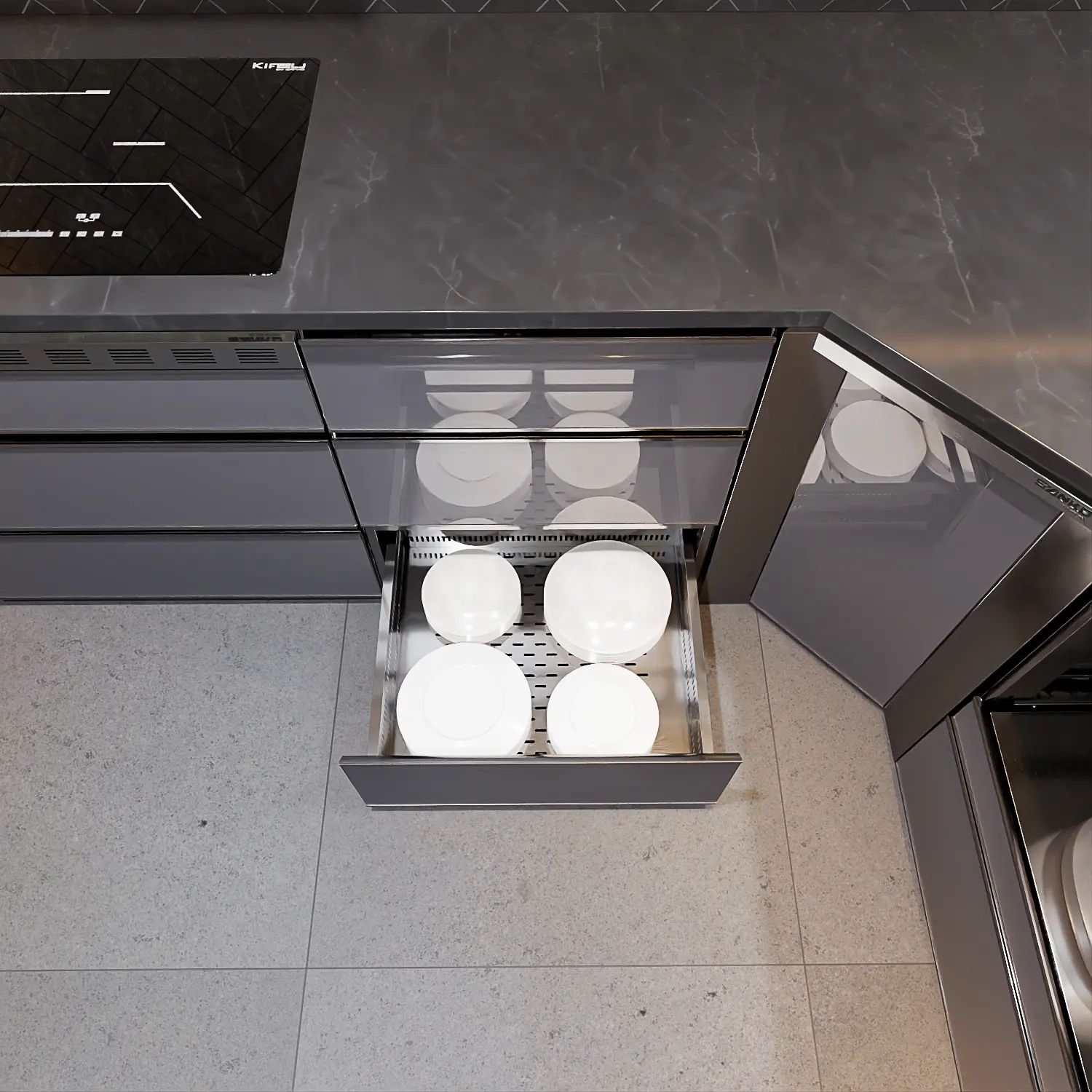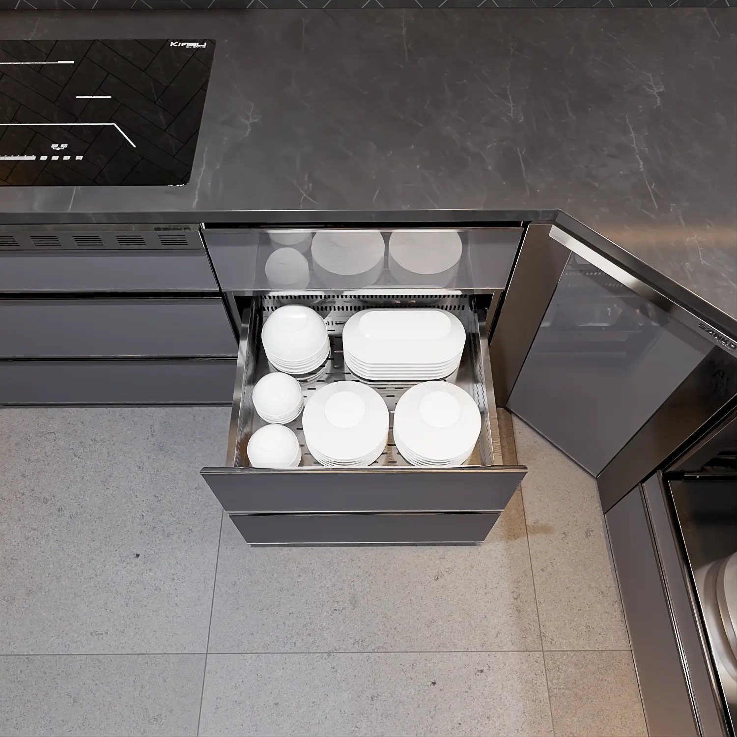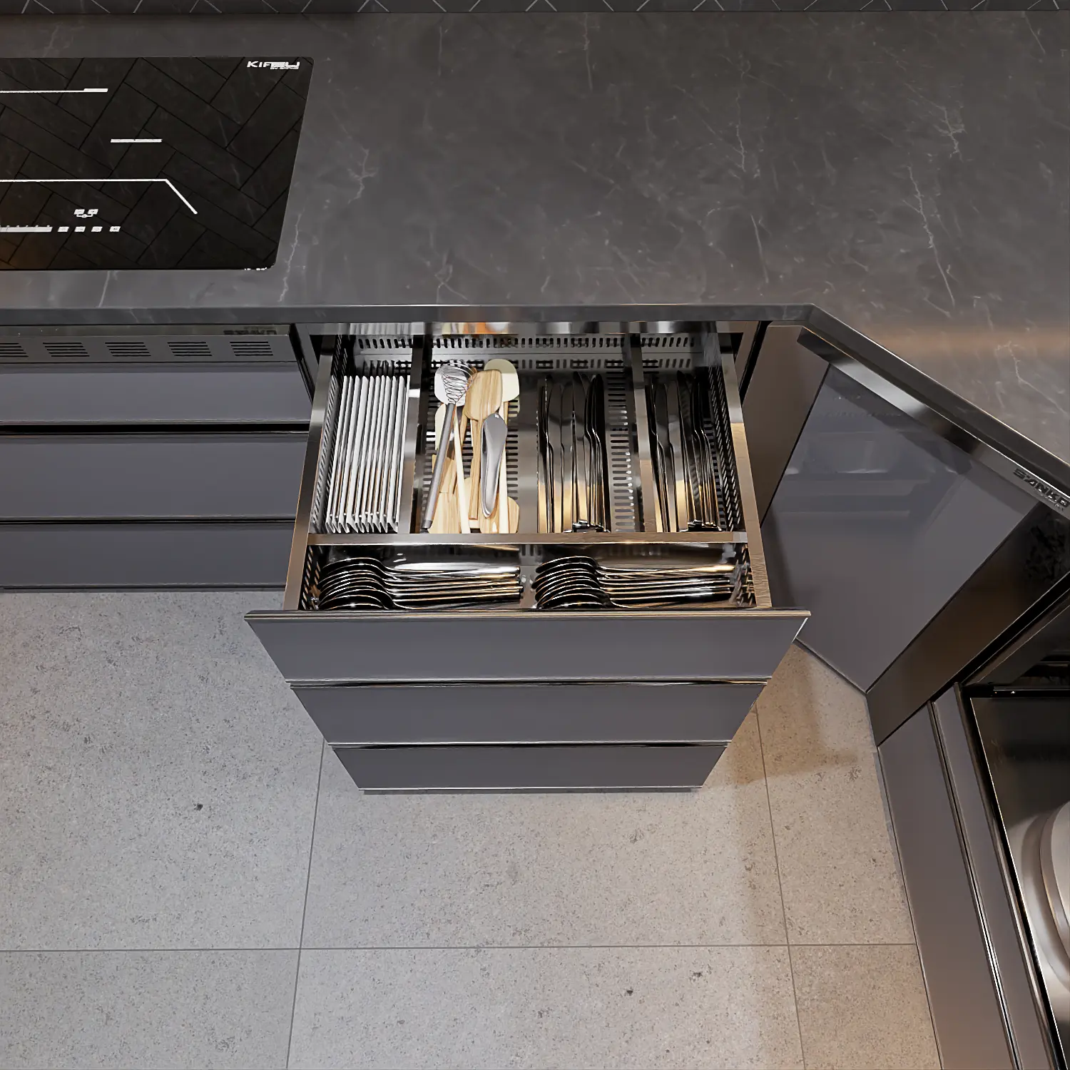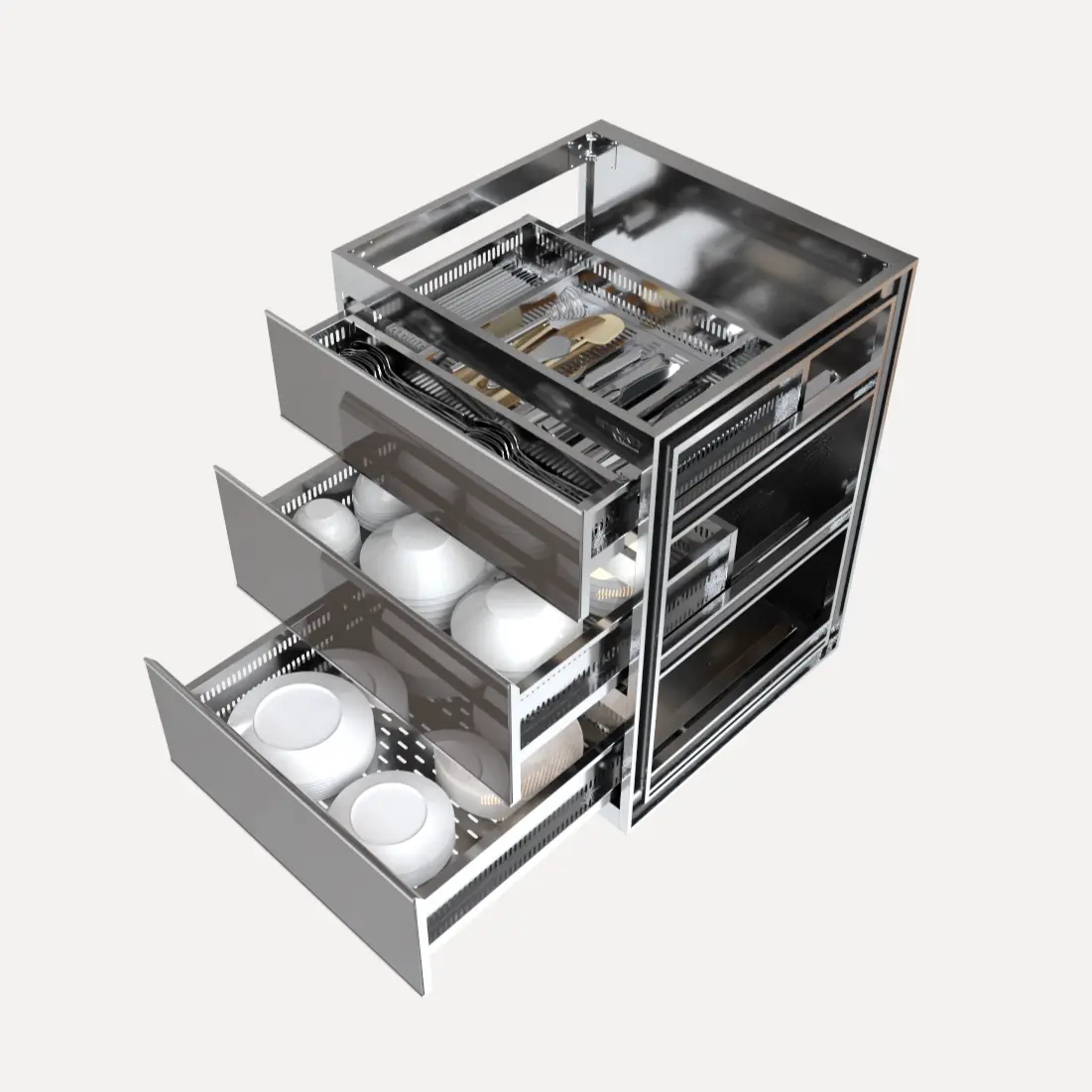 - Công năng chính: Lưu trữ bát đĩa + Phân loại thìa, đũa, muỗng