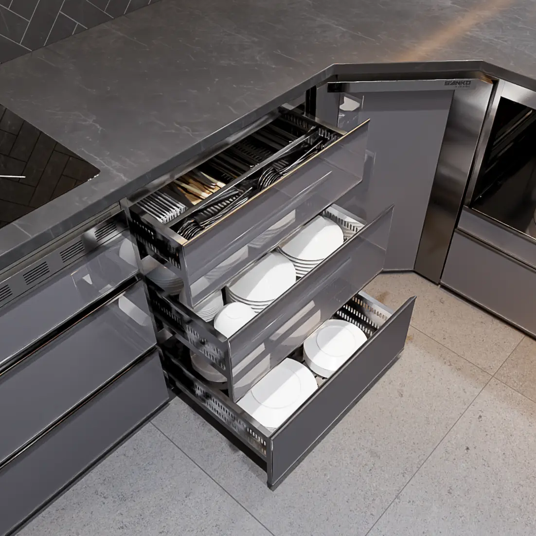 Sanko cam kết chất lượng hoàn thiện sắc sảo trên từng chi tiết của module inox 304 No4 C600CD. Từ những đường cắt CNC lỗ thoát hơi tinh tế đến hệ thống ray trượt bền bỉ, tất cả đều nhằm mang lại sự tiện nghi và sang trọng cho gian bếp của bạn.
