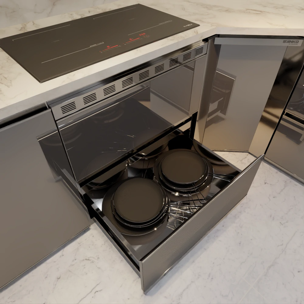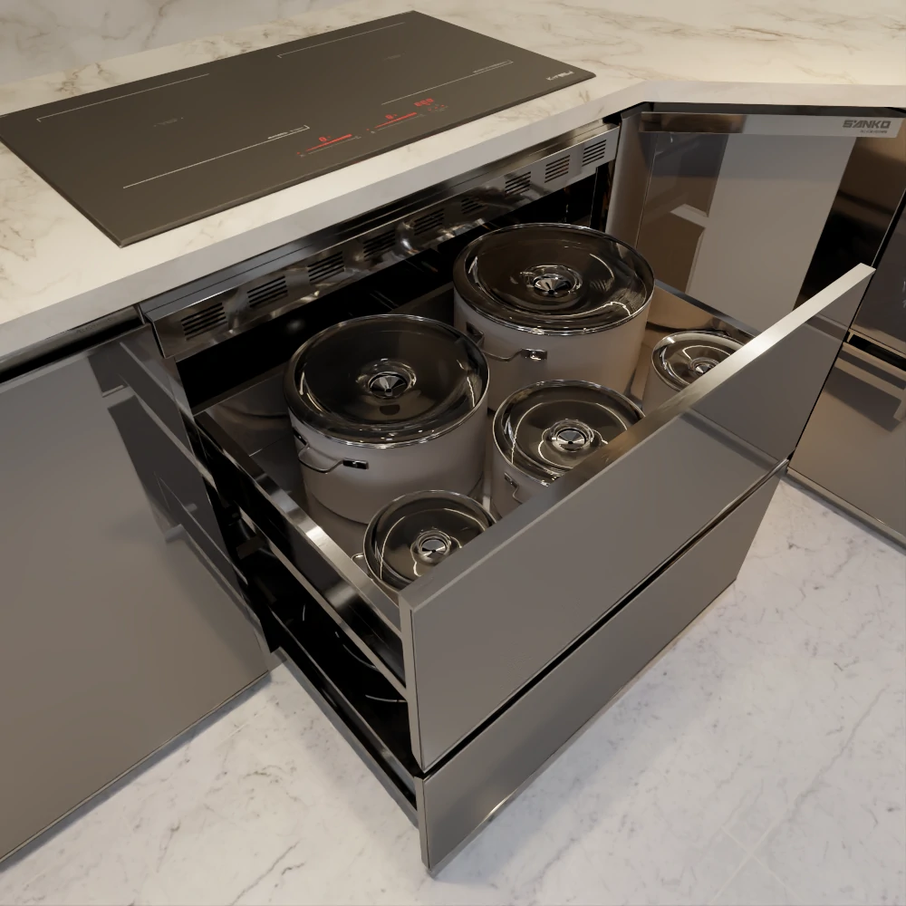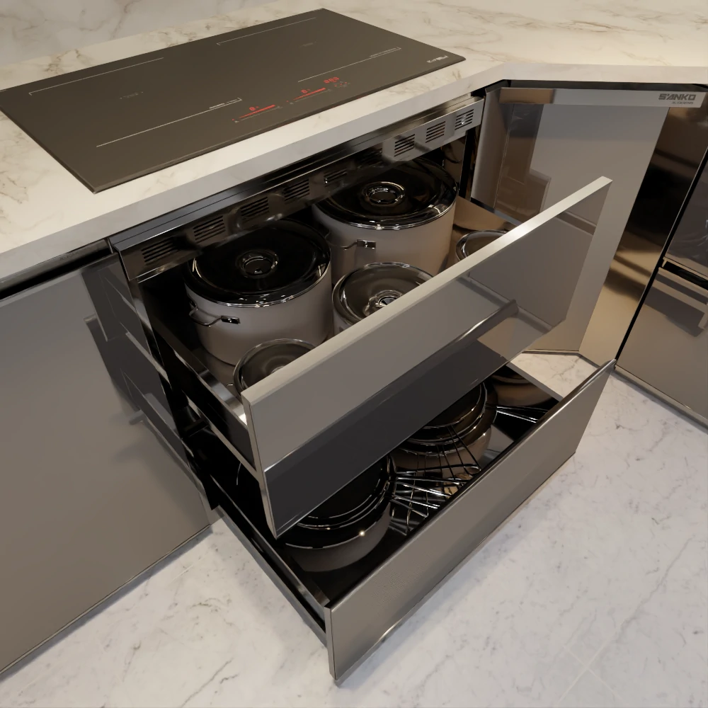 Module tủ đặt bếp nấu 2 ngăn kéo C750MX là giải pháp “2 trong 1” hoàn hảo: Vừa bảo vệ an toàn cho thiết bị bếp từ điện đắt tiền nhờ hệ thống tản nhiệt chuẩn kỹ thuật, vừa giải phóng không gian lưu trữ xoong nồi cồng kềnh. Hãy để Sanko giúp bạn kiến tạo một không gian bếp chuyên nghiệp, thẩm mỹ và cực kỳ bền bỉ.