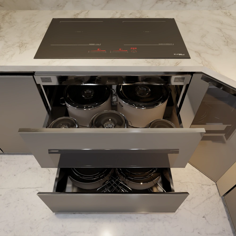 - Lưu trữ xoong nồi trực tiếp: Thiết kế 2 ngăn kéo lớn cho phép:
