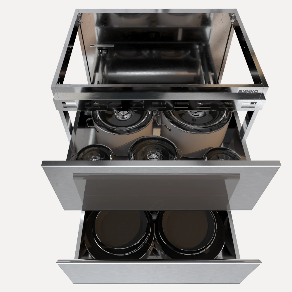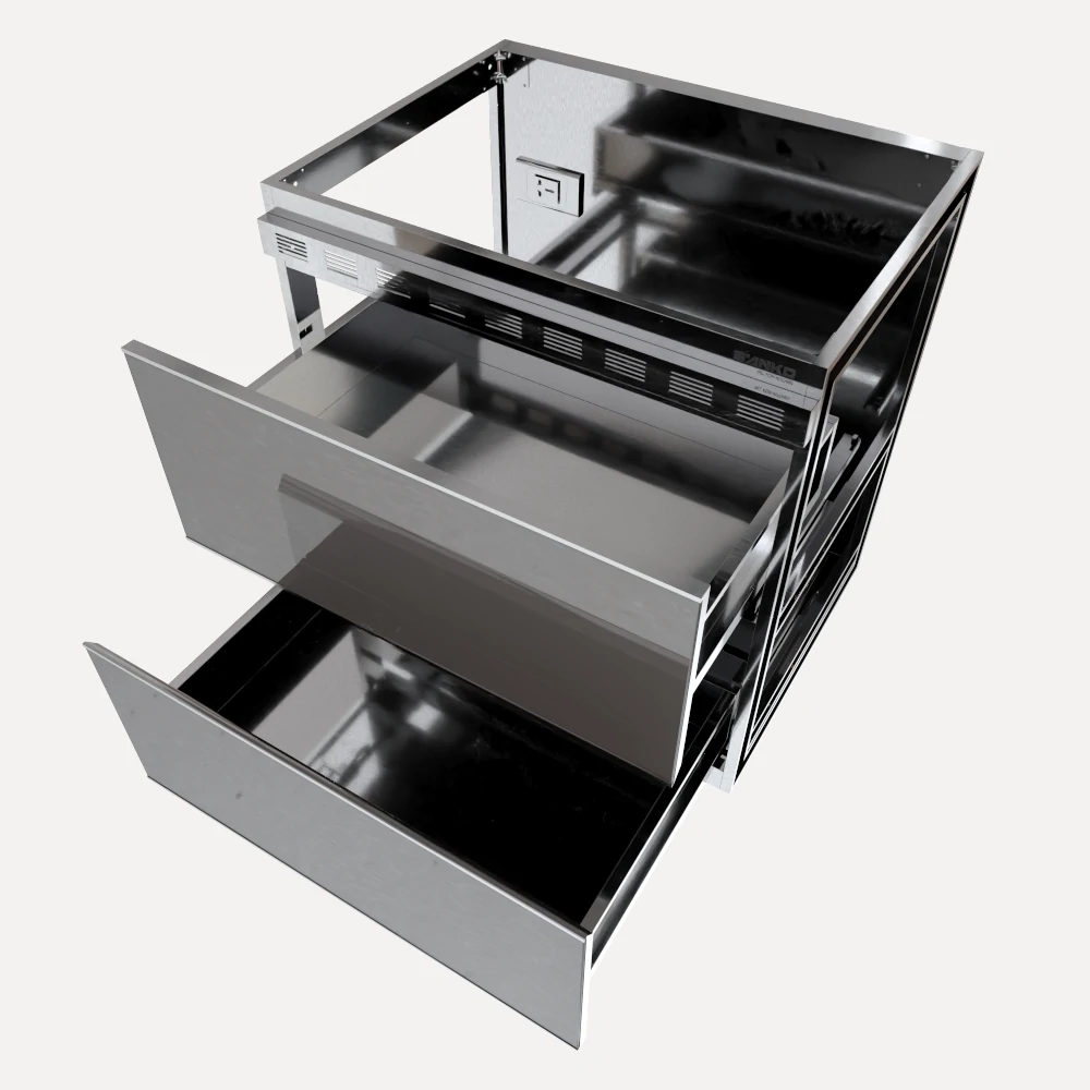 Tủ đặt bếp nấu 2 ngăn kéo C750MX là module tủ bếp inox 304 dưới chuyên biệt được thiết kế để đặt ngay vị trí nấu nướng (dưới bếp từ/bếp hồng ngoại). Với kích thước Rộng 750 – Sâu 580 – Cao 790 (mm), sản phẩm sở hữu 2 ngăn kéo siêu sâu chuyên dùng để lưu trữ xoong nồi cỡ lớn, đồng thời tích hợp hệ thống khe thoát nhiệt bảo vệ thiết bị điện phía trên.