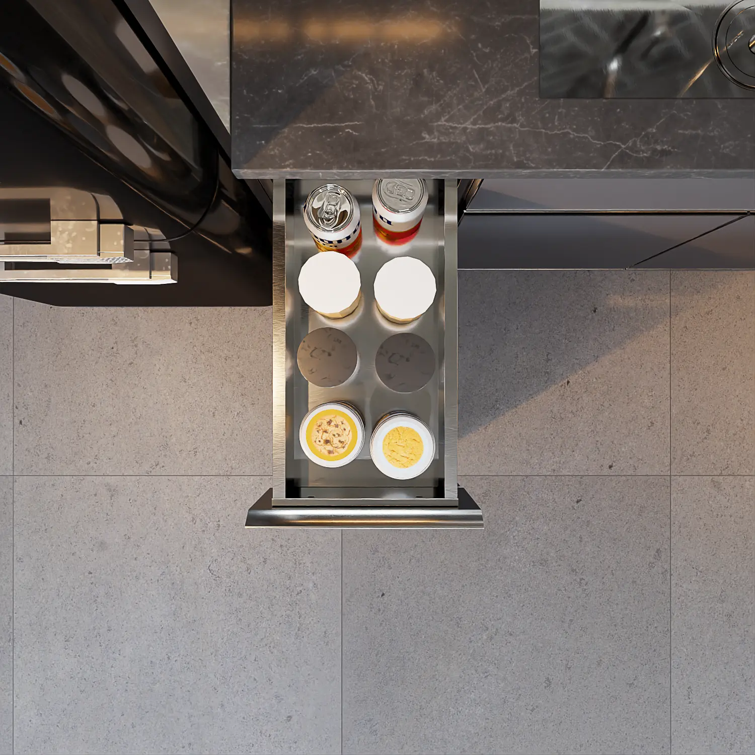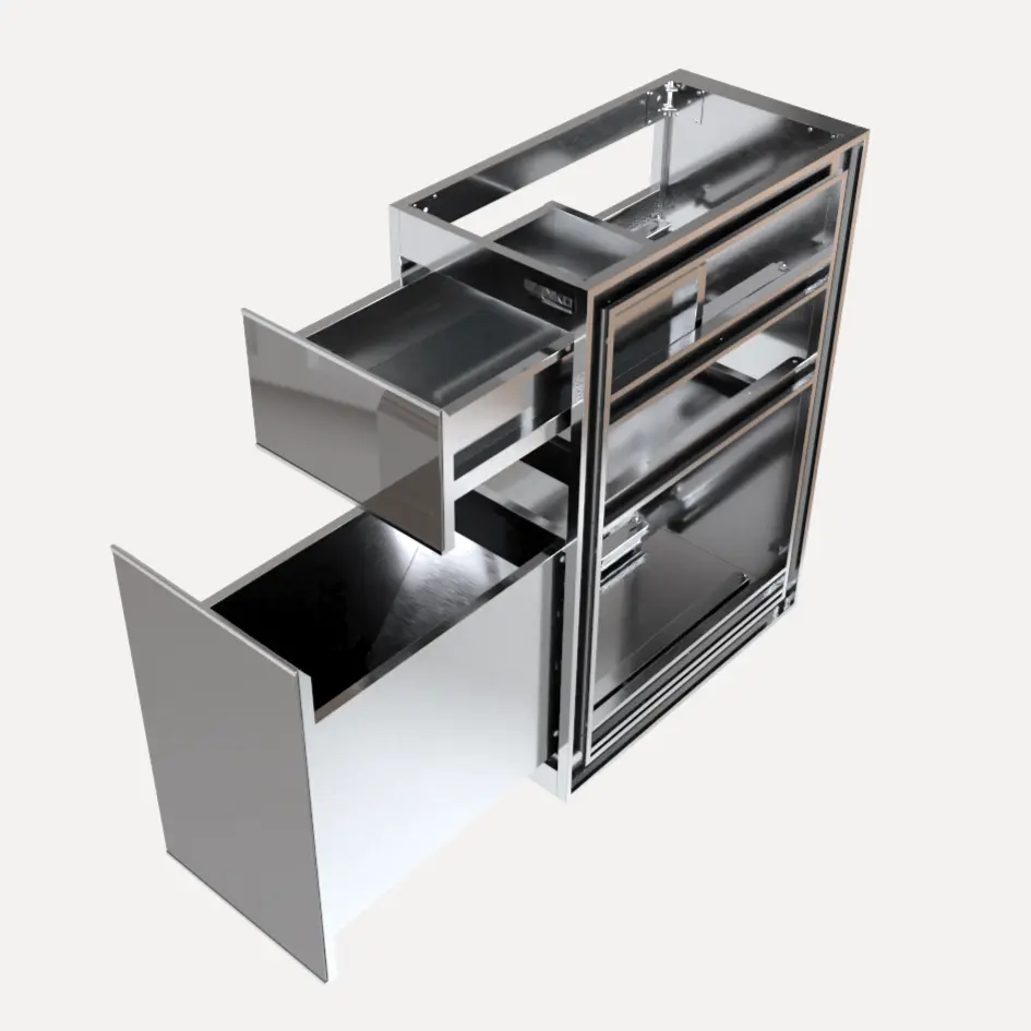 - Ngăn kéo gia vị: Thường xuyên kiểm tra và lau sạch các hạt muối/đường rơi vãi để tránh rỉ sét ray trượt.