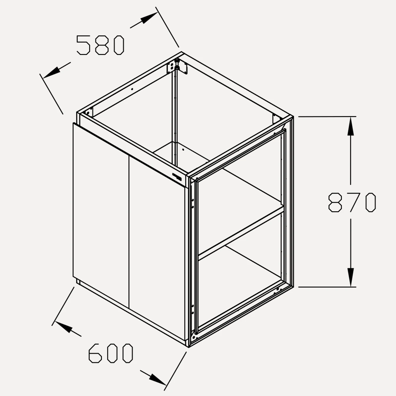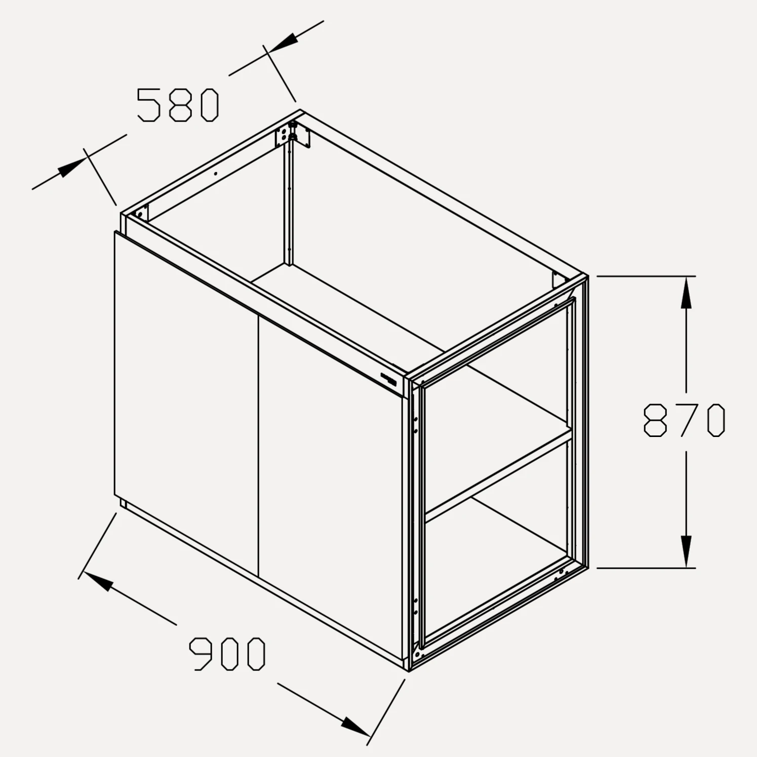 • Hệ khung liền khối: Khung tủ được chấn gấp từ Inox tấm nguyên khối bằng máy CNC. Chiều sâu tiêu chuẩn 580mm đồng bộ tuyệt đối với mọi hệ tủ bếp dưới hiện đại.